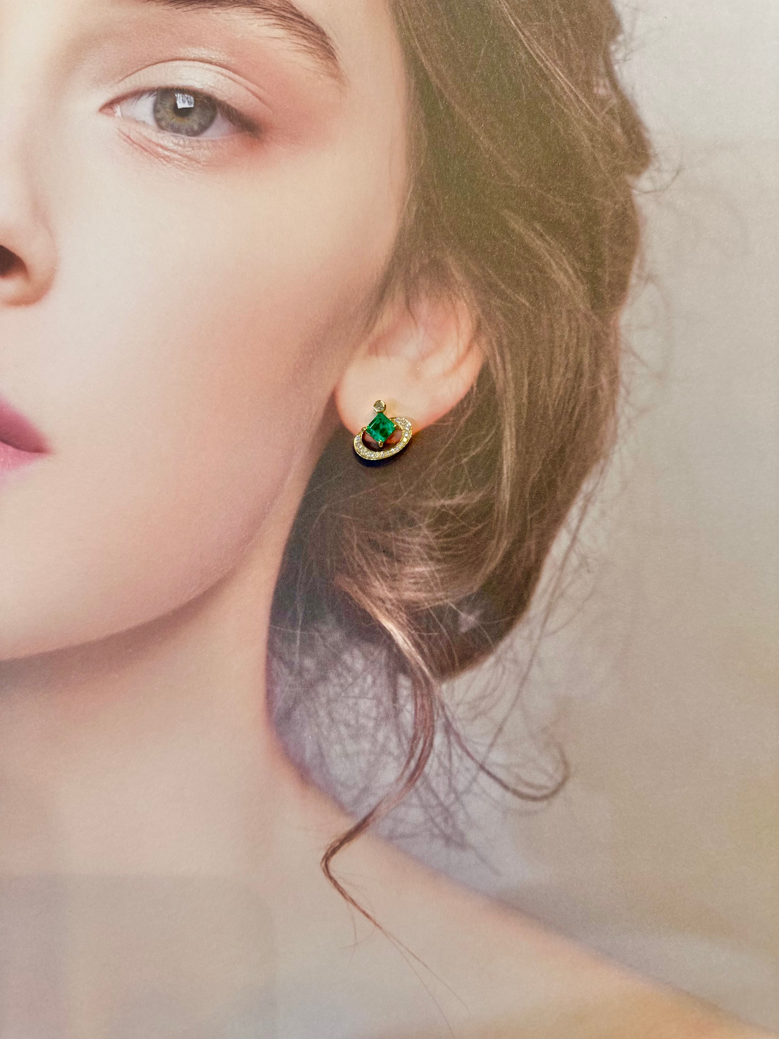 K18ゴールドに、スクエアカットのエメラルドをセットし、